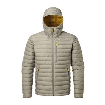Rab fluorocarbon free hydrophobic down developed in conjunction with nikwax. Lightweight and packable while offering increased durability warmth and weather resistance. This down jacket is made from 750 fill hydrophobic goose down which means that it is water resistant so that you can stay comfortable for longer in harsh weather conditions. 750fp r d s certified european goose down 125g 4oz in size l pertex quantum inner.